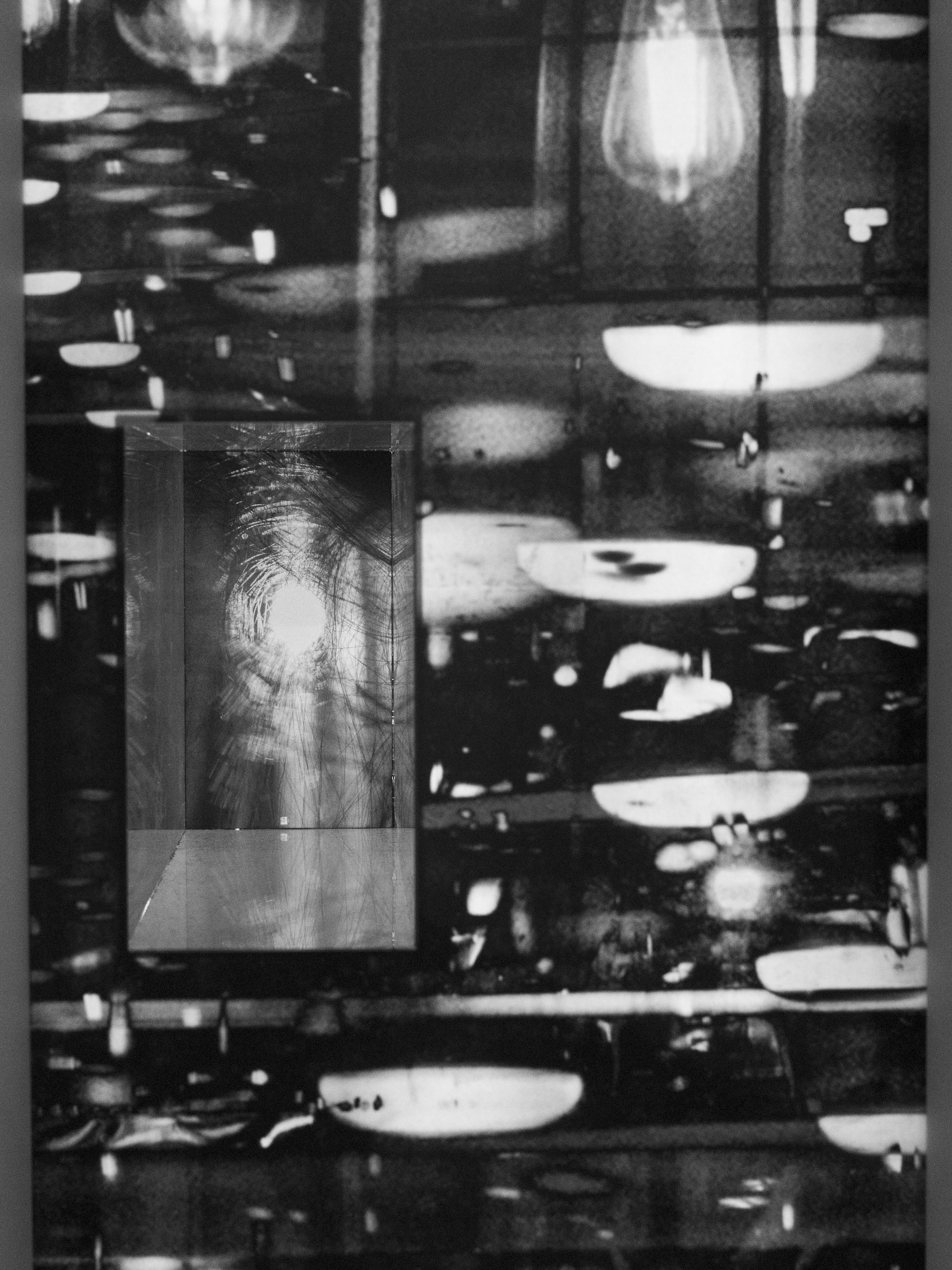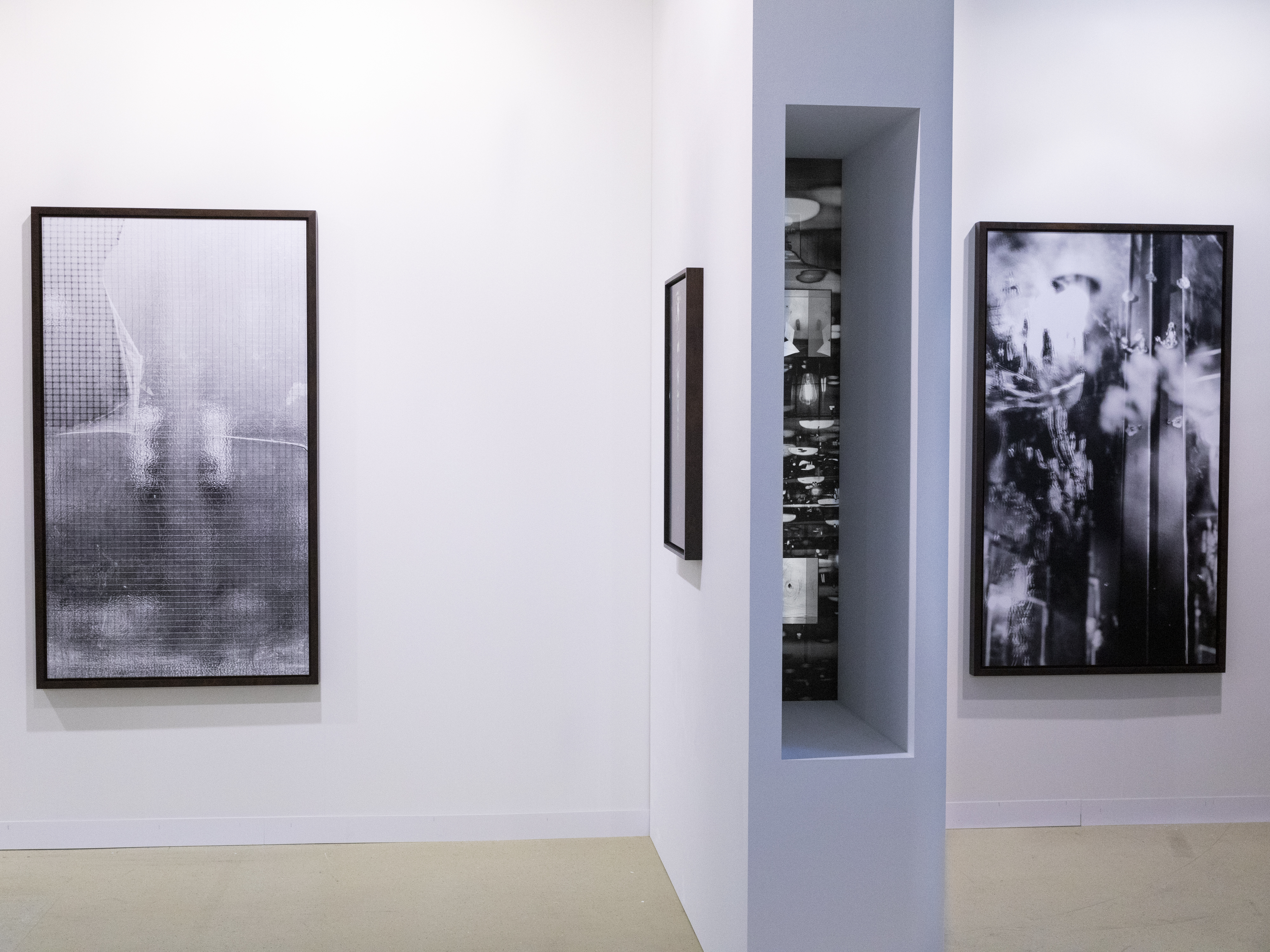 Wood, UV prints on acrylic, LED light, paint, and hardware
